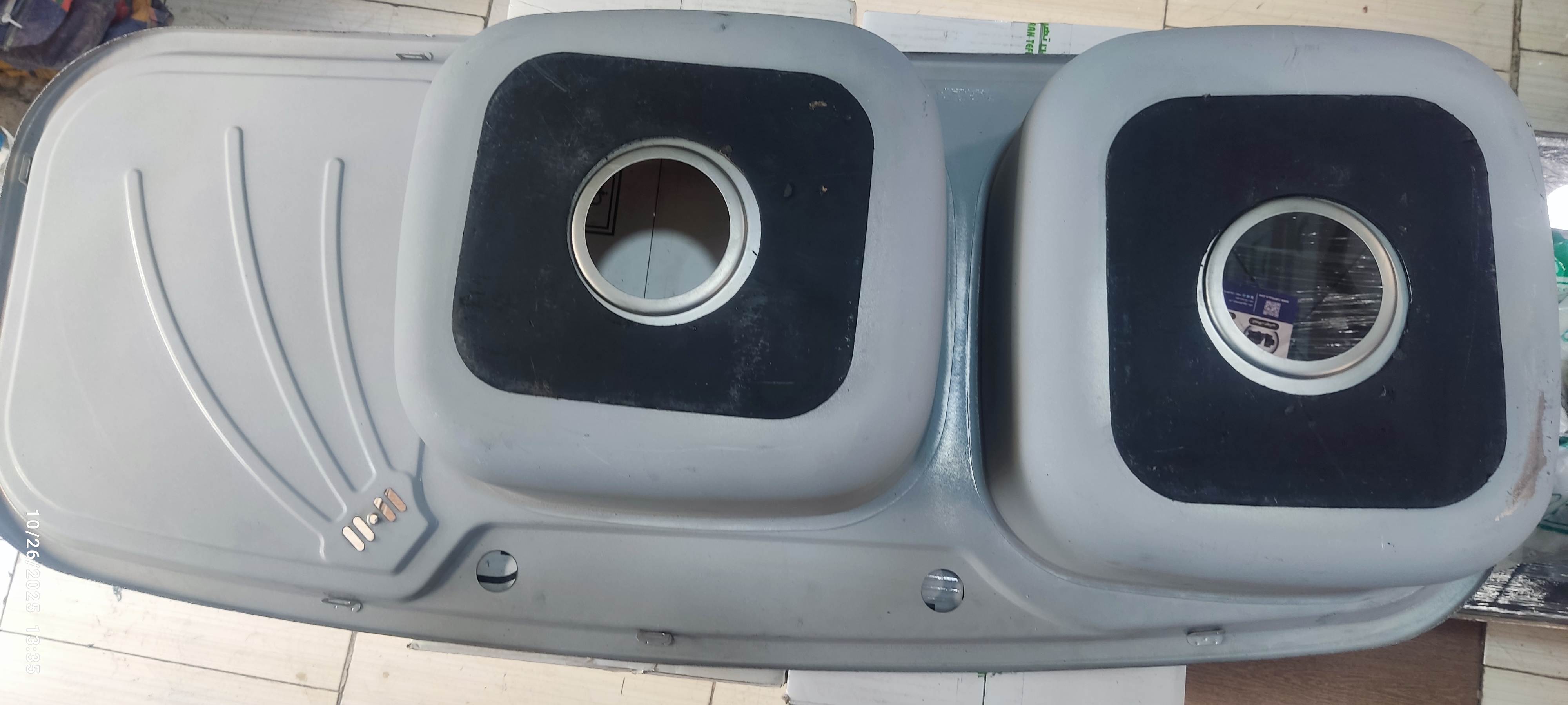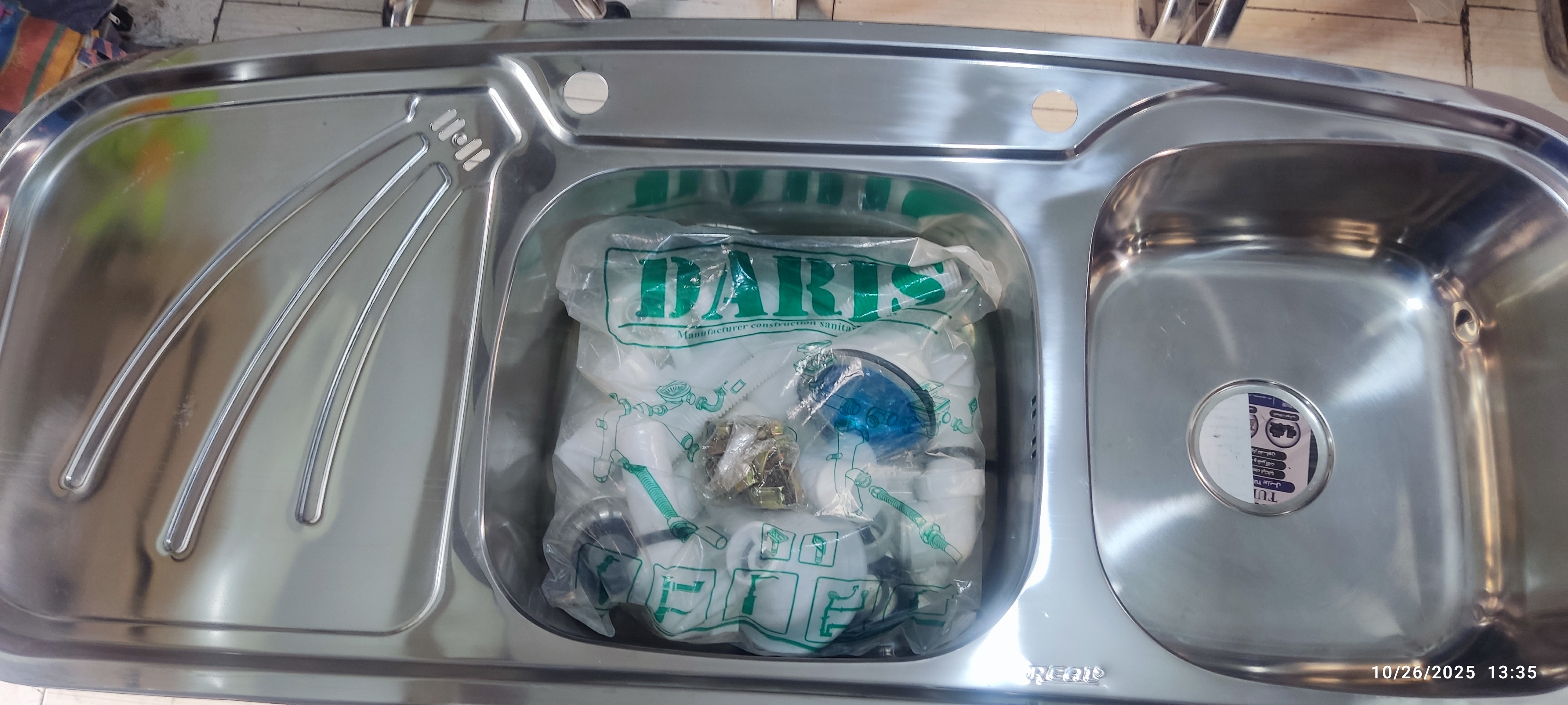 سینک استیل دولگنه مارک وارداتی real سایز ۶۰*۱۲۰ عمق۲۰ سانت.دارای جامایعی سیفون کامل پلاستیکی طرح محک همراه با بست و نوار درزگیر به همراه پوشش ضد صدا در پشت کامل سینک وجود لایه اپوکسی در زیر سینک ظرفشویی موجب میشود که صدای آزار دهنده هنگام چکه کردن آب کمتر به گوش برسد و وجود یک لایه لاستیکی حدود 2 میلیمتر چسبیده شده در زیر هر لگن نیز موجب کاهش صدای ریزش آب میگردد و اصولا بعنوان ضربه گیر سینک ظرفشویی نامیده میشود